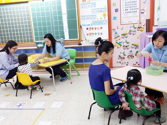 本園於2015年10月31日(星期六) 為2016-2017年度入學的幼兒進行面談,當日家長和幼兒先在操場上集合,然後由一位家長陪同進入課室,與同伴一起做韻律活動﹔接著老師透過簡單的遊戲及對話,了解幼兒在認知、語言、情緒等各方面的發展。最後,老師與家長交談,以便更進一步了解幼兒的情況,並作出客觀評估。