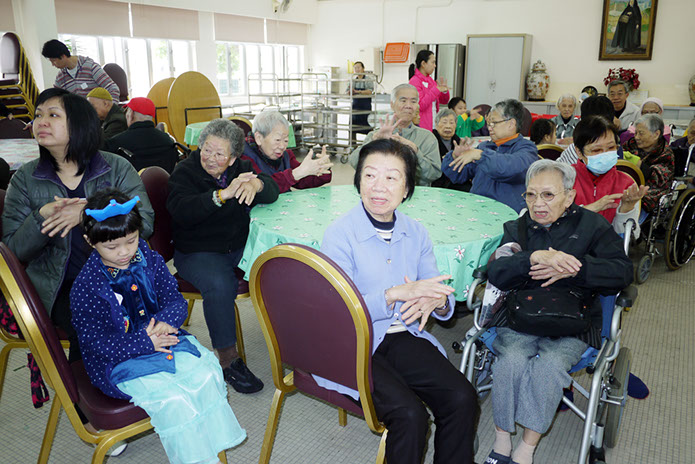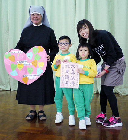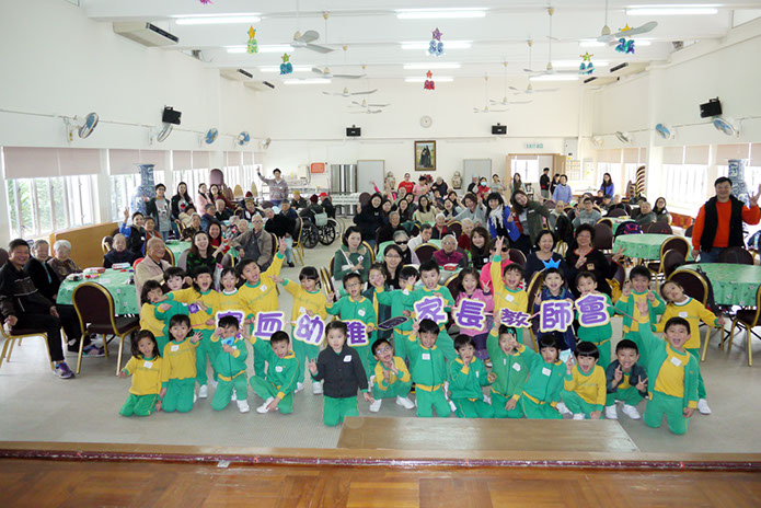 2016年1月9日(星期六)上午,家教會與本園宗教組合辦「家校同心表關懷~親子探訪護老院」活動。我們在10時到達黃竹坑聖瑪利安老院。大家安坐在禮堂,由司儀余詠怡老師及家教會委員黃心怡女士帶領小朋友頌唱-基督小幼苗、讚美主及耶穌喜愛小孩等歌曲來感謝天主。熱身表演後,孩子們蹦蹦跳地表演活力健康操,盡顯個人活力。再透過「敲咚咚」音樂替公公婆婆們搥骨,場面十分溫馨。葉主任和余麗芳老師也帶動全場齊做「十巧操」運動。接著由蔡肖卿老師、鄭安琪老師及鍾瑞芬老師教授長者做小手工「摺玫瑰花」。我們更與公公婆婆玩「傳球遊戲」,遊戲過後家長和小朋友一起送給長者們一份「愛心禮物」,今年的禮品包括毛巾、梳打餅及襪子,讓公公婆婆感受到我們對他們的關懷。最後由工作人員帶領參觀院舍的設施,大家也懷着愉快的心情結束這天的活動。