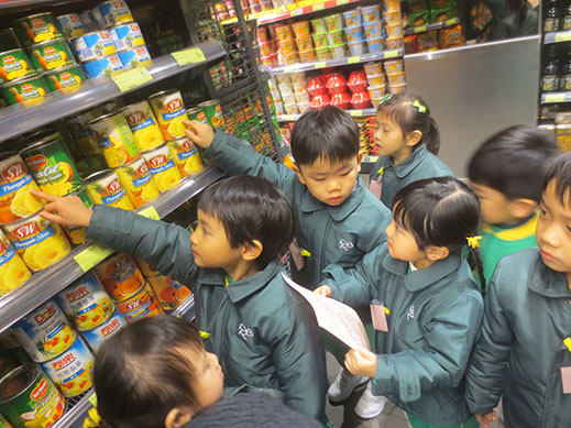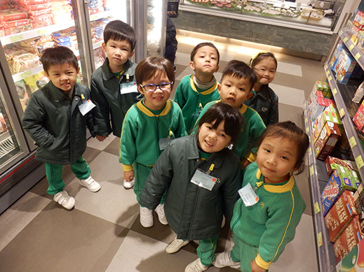 為配合主題《餐盒裏的秘密》的學習活動,低班小朋友於2016年1月14日前往跑馬地《FUSION》超級市場作參觀學習。小朋友親身進入超級市場內,仔細地觀看貨架上陳列的食品,從而認識超級市場內食物類別及擺放方式。老師更帶備環保袋與幼兒一起選購一些有益的食物,回校進行小食嘗試,讓他們從中學習購買食品時應注意的事項及購物的程序。