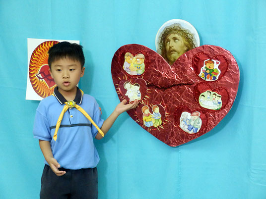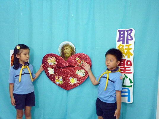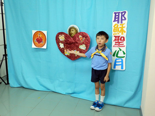 六月三日(星期五)是耶穌聖心節,學校特别在寶血電視台舉行耶穌聖心月敬禮,高班公教同學代表都願意學習耶穌一樣,愛人如己,多做愛人的行為,並學習「耶穌聖心」的慈悲和寬大,時常關懷弱小和接納別人的軟弱,藉此讓耶穌聖心不會再受傷。