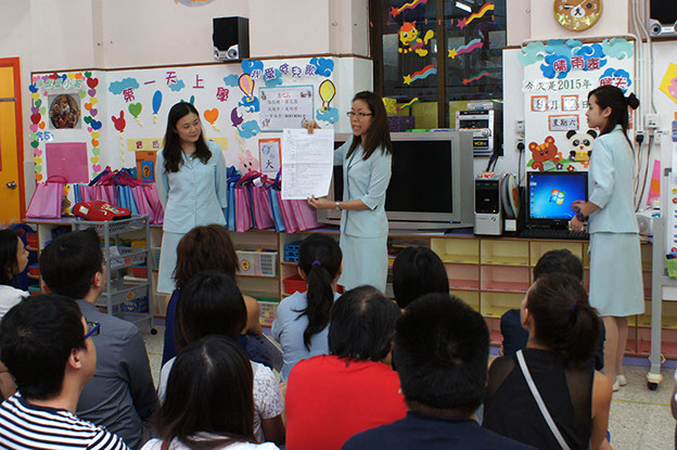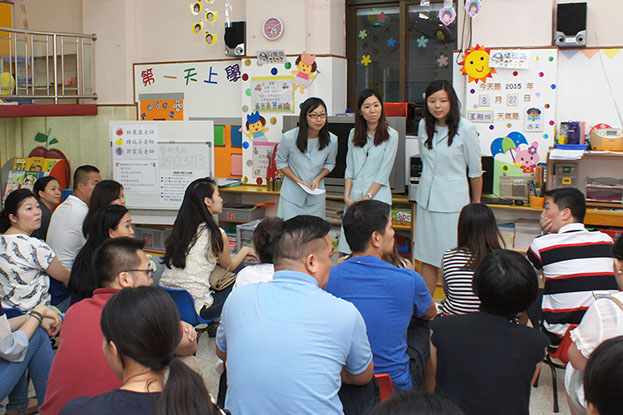 在2015年8月22日(星期六)上午舉行開學前家長會,當天各班家長來到學校,並按子女的班別進入課室與班主任老師會面。開始時先由校長甘麗貞修女向家長作歡迎詞,英文科老師也透過視像系統講解英文課程,然後老師介紹各班的開課事項及派發物品,家長教師會的委員也透過視像系統呼籲家長參選今屆家長教師會委員。透過老師的講解,家長清晰了解開課的事宜,為孩子作一個開學的準備。