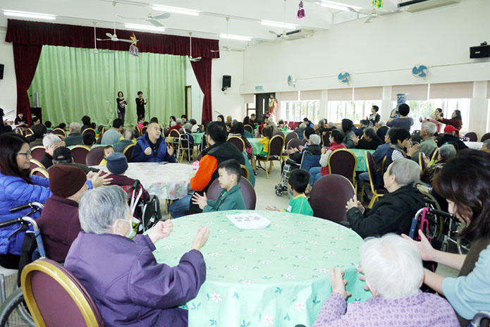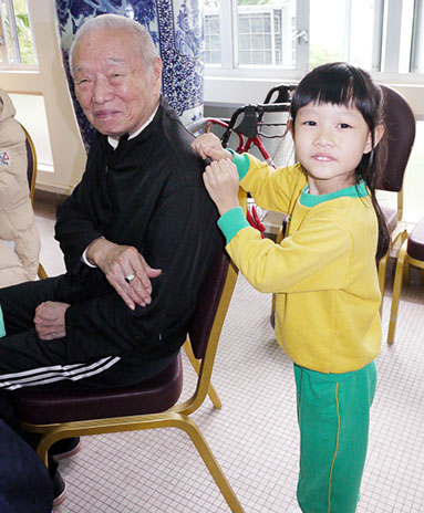 2016年1月9日(星期六)上午,家教會與本園宗教組合辦「家校同心表關懷~親子探訪護老院」活動。我們在10時到達黃竹坑聖瑪利安老院。大家安坐在禮堂,由司儀余詠怡老師及家教會委員黃心怡女士帶領小朋友頌唱-基督小幼苗、讚美主及耶穌喜愛小孩等歌曲來感謝天主。熱身表演後,孩子們蹦蹦跳地表演活力健康操,盡顯個人活力。再透過「敲咚咚」音樂替公公婆婆們搥骨,場面十分溫馨。葉主任和余麗芳老師也帶動全場齊做「十巧操」運動。接著由蔡肖卿老師、鄭安琪老師及鍾瑞芬老師教授長者做小手工「摺玫瑰花」。我們更與公公婆婆玩「傳球遊戲」,遊戲過後家長和小朋友一起送給長者們一份「愛心禮物」,今年的禮品包括毛巾、梳打餅及襪子,讓公公婆婆感受到我們對他們的關懷。最後由工作人員帶領參觀院舍的設施,大家也懷着愉快的心情結束這天的活動。