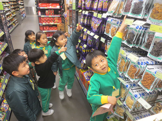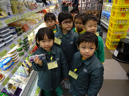 為配合主題《餐盒裏的秘密》的學習活動,低班小朋友於2016年1月14日前往跑馬地《FUSION》超級市場作參觀學習。小朋友親身進入超級市場內,仔細地觀看貨架上陳列的食品,從而認識超級市場內食物類別及擺放方式。老師更帶備環保袋與幼兒一起選購一些有益的食物,回校進行小食嘗試,讓他們從中學習購買食品時應注意的事項及購物的程序。