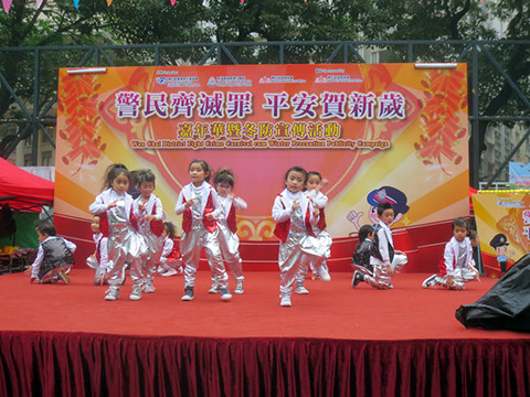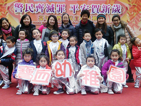 本園兒童舞蹈班於2016年1月16日(星期六)由灣仔區撲滅罪行委員會舉辦「警民齊滅罪 平安賀新歲」暨冬防宣傳表演活動。透過表演活動,從而培養兒童群性的發展,欣賞藝術情操,發揚兒童舞蹈藝術。當天小朋友演出節目[HAPPY DANCE],以歡快舞蹈展現幼兒多姿多采的特質,喻意積極正向和諧社區生活,小朋友的表演非常精彩,表現自信,舞姿有型有款,獲得了在場觀眾熱烈的掌聲。