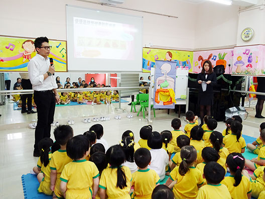 配合主題《公主生病了》,我們於2016年5月12日邀請了益力多乳品公司到校為幼兒班學生舉行「健康飲食講座」。講解員利用模擬人體器官的道具,向幼兒介紹食物由食道至腸道的分解過程及排便過程,並透過動畫讓幼兒知道腸道內的益菌有助擊退有害細菌和如何保持腸道健康。幼兒更特意為講者製作感謝禮物,以示謝意。