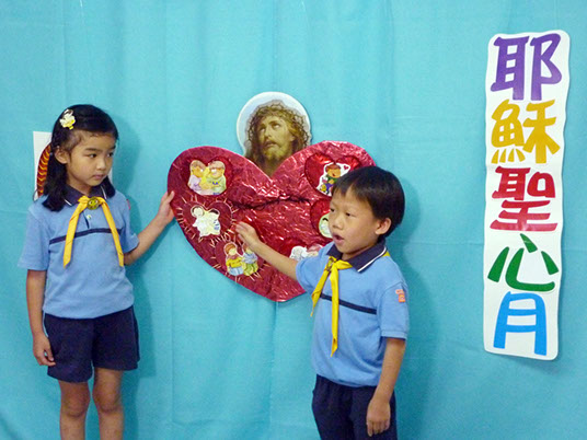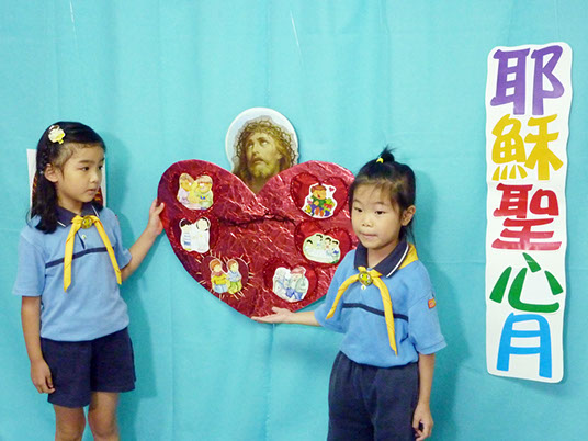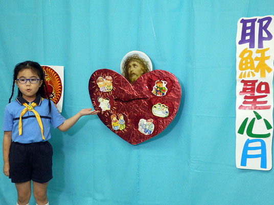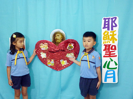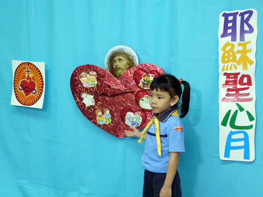 六月三日(星期五)是耶穌聖心節,學校特别在寶血電視台舉行耶穌聖心月敬禮,高班公教同學代表都願意學習耶穌一樣,愛人如己,多做愛人的行為,並學習「耶穌聖心」的慈悲和寬大,時常關懷弱小和接納別人的軟弱,藉此讓耶穌聖心不會再受傷。