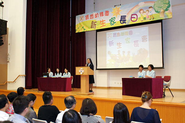 6月23日晚上於禮頓山社區會堂,為2016年度入讀本園的家長舉行「新生家長會」,當晚先由校長甘麗貞修女致歡迎詞,簡略介紹學校的背景及辦學宗旨,然後由兩位主任向家長講解開課須知、幼兒入學的準備及本園的教學理念,外籍英語老師、普通話科老師及三位級長透過幼兒上課的活動片段,讓家長了解幼兒的學習生活。最後更設答問時間,解答家長對學校或入學的問題。本園期望與家長們攜手合作,讓幼兒開展一個愉快及充實的學習生活。