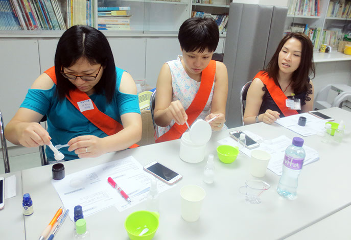 2016年6月25日(星期六)舉行了「家長分享會~(防蚊、潔面DIY)」,參加者非常踴躍,我們邀請了低班仁學生陳柏穎的媽媽-詹翠華女士教授製作防蚊及潔面用品的技巧。首先是簡短講解理論及材料份量,然後示範製作的技巧;接着各位家長便開始分工合作地動手做,過程十分順利,最後完成了製成品包括:驅蚊水、蚊膏及茶樹油薰衣草潔面啫喱。家長們感到非常實用,亦可為小朋友在夏日防蚊作好準備。這次的分享會令大家歡渡了一個愉快的上午。