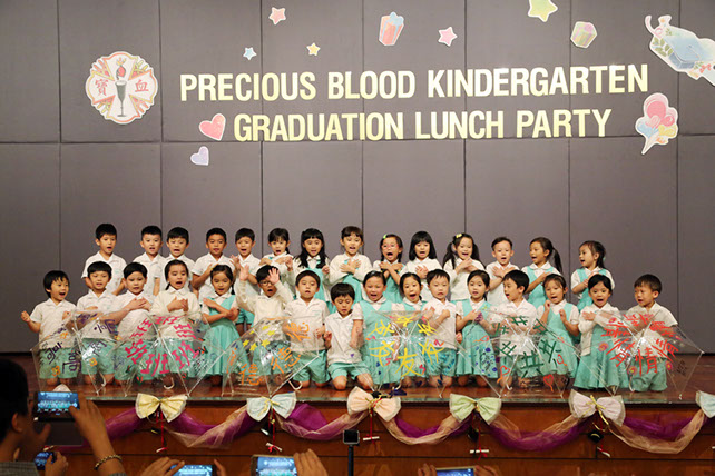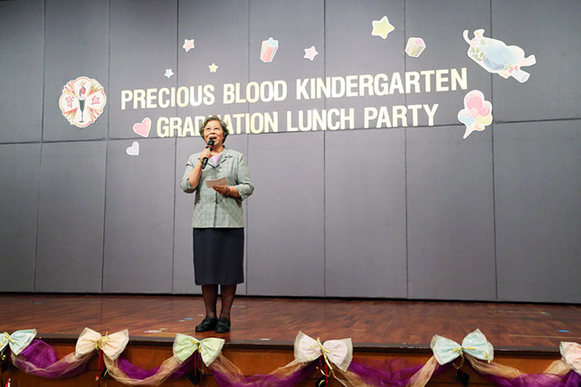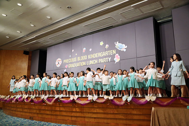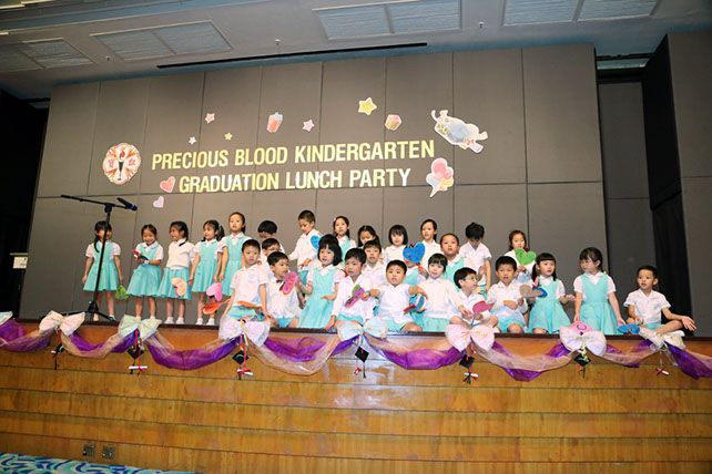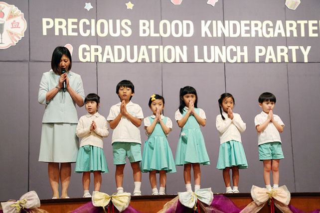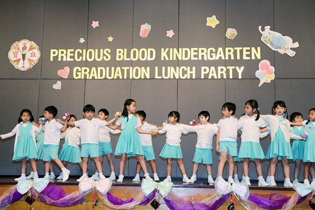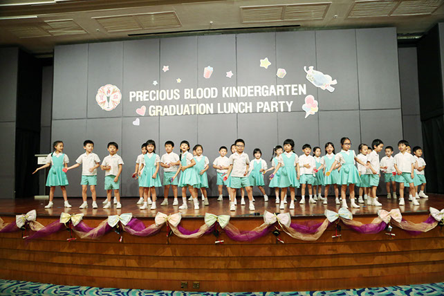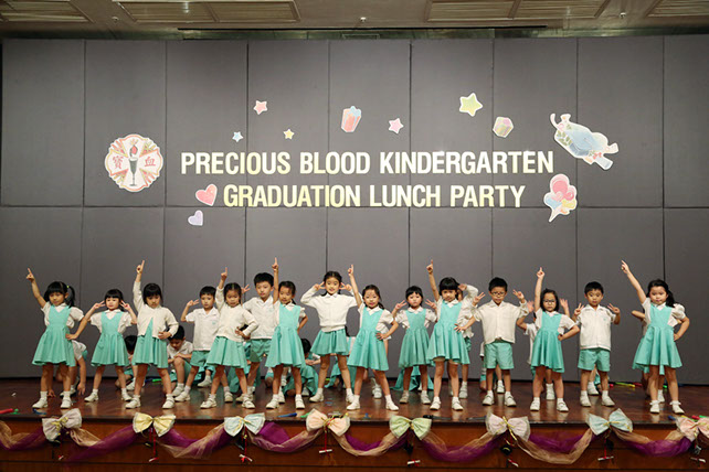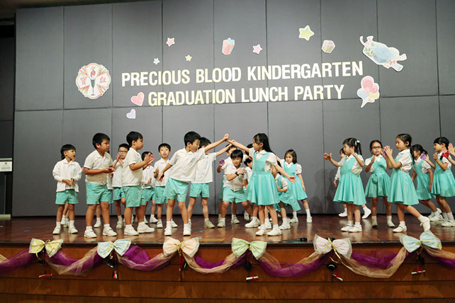 在祝福祈禱環節中,大家透過遊戲與同伴互相送上祝福。畢業生與老師到台上唱出「師生樂」歌曲,以歌聲表達感謝老師的教導。在享用豐富美味的自助餐之外,各班畢業生輪流表演精采的歌舞節目。在進餐時,他們除了品嚐美味的食物外,還與各位老師和同學拍照留念,場面既熱鬧又溫馨。